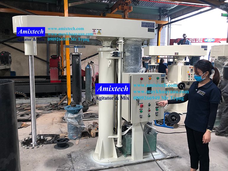 - Máy có khung sườn thép, sơn chống gỉ, cánh khuấy, trục khuấy bằng inox 304
