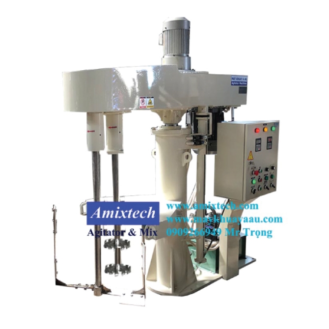 - Hệ thống nâng hạ: Máy được thiết kế với hệ thống khuấy nâng hạ bằng cơ cấu thủy lực, tiện lợi cho thao tác trong quá trình sản xuất.